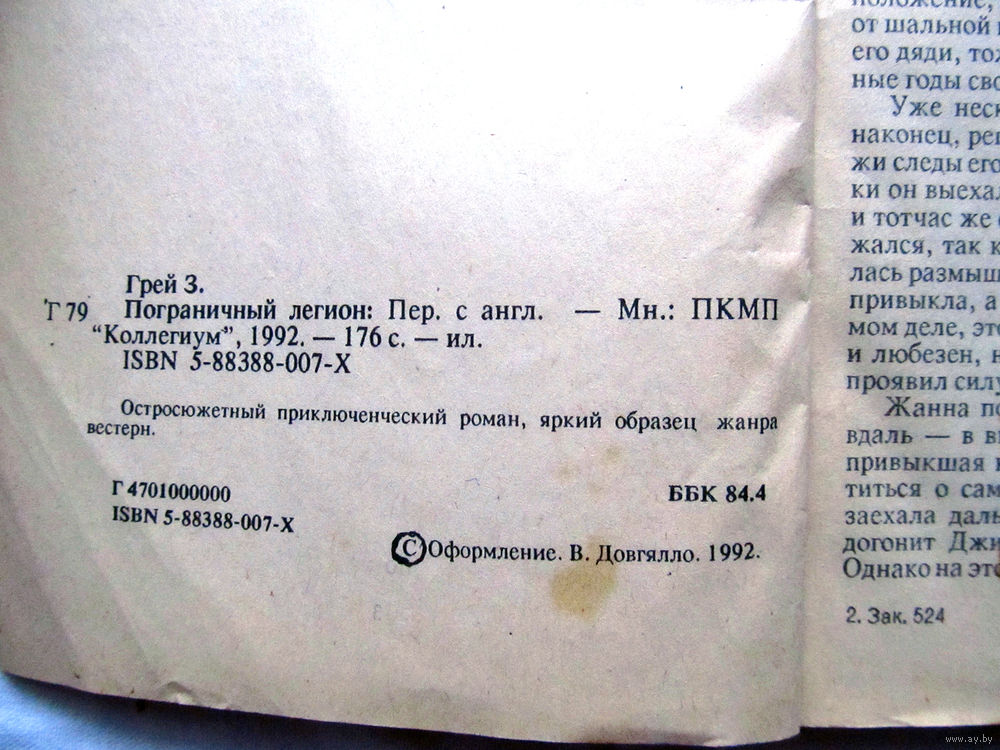 25-34 Зейн Грей Пограничный легион Минск Коллегиум 1992