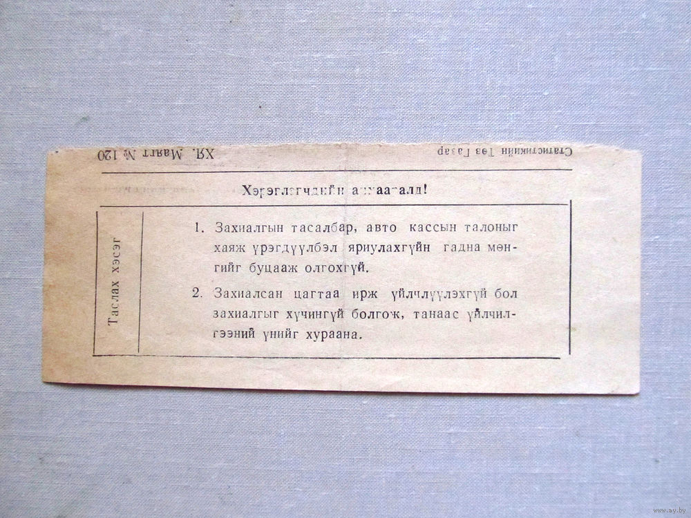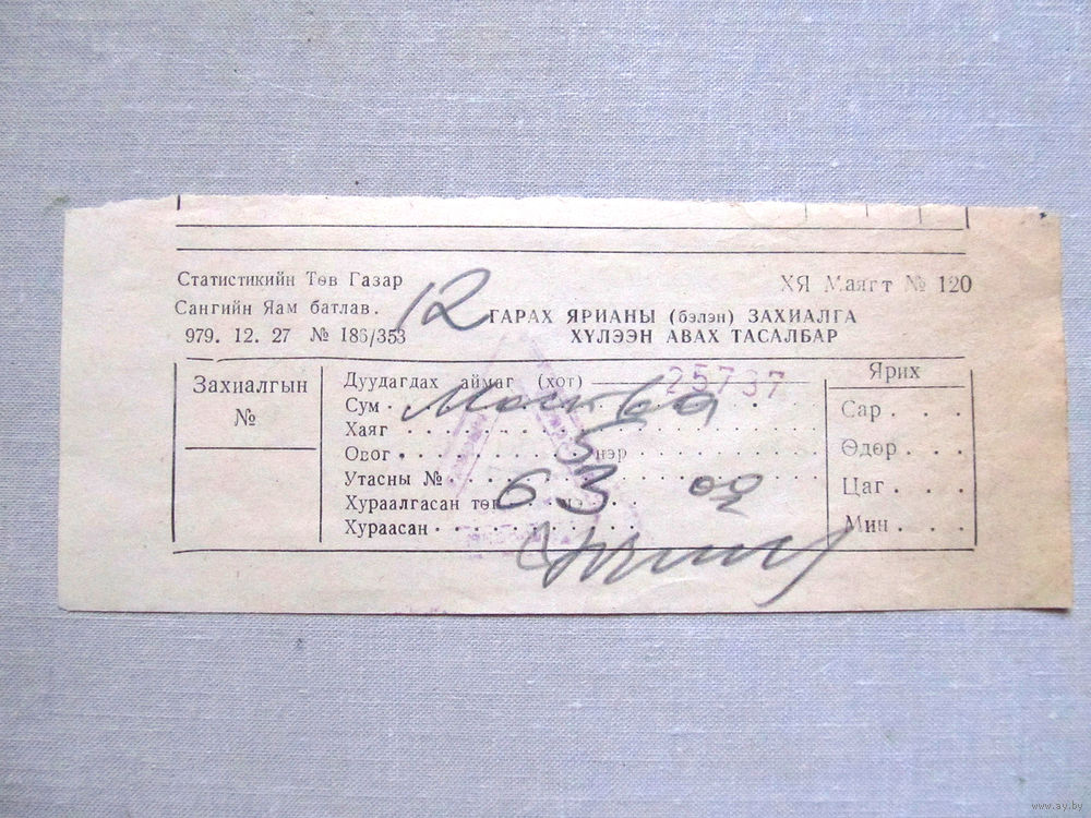 25-34Б Билет для бронирования исходящего звонка МО СССР Группа советских войск в Монголии МНР 39-я армия 1970-80-е