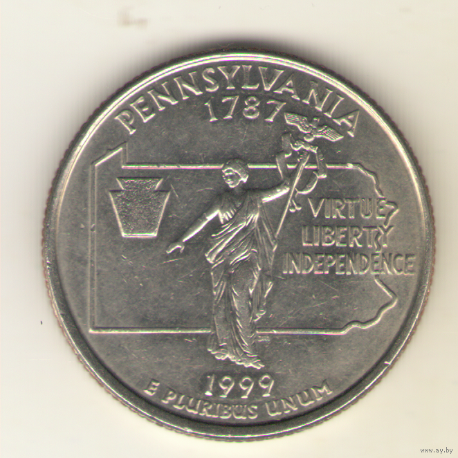 25 центов 1999 г. Квотеры "50 штатов"- Пенсильвания "D".