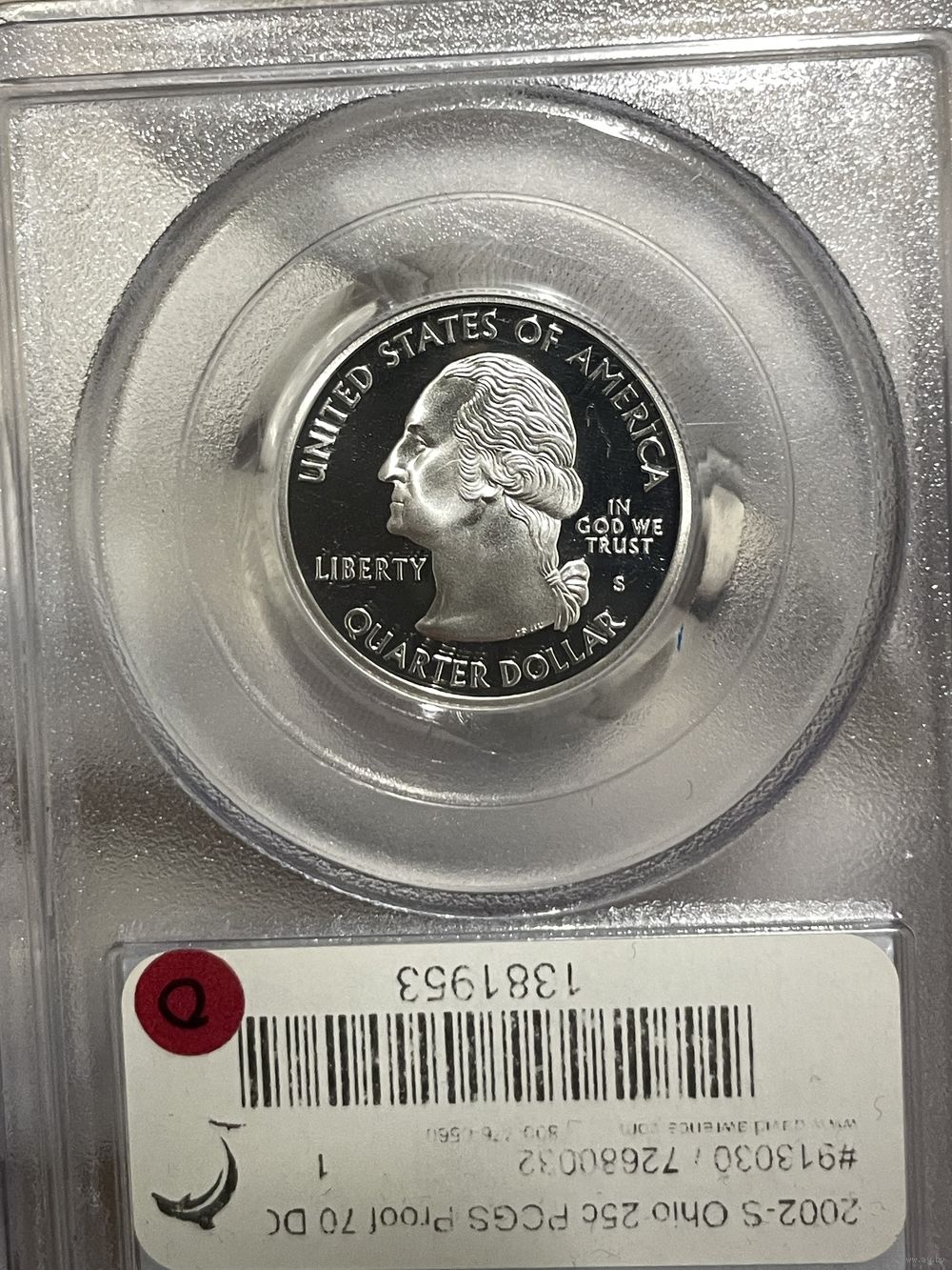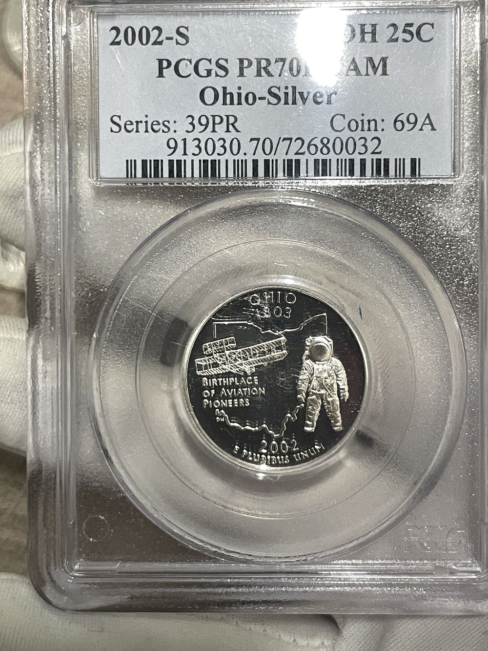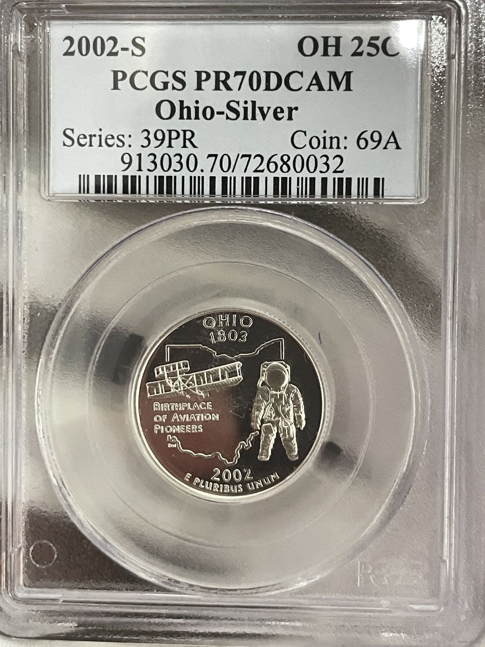 25 центов 2002 -s штат охио pcgs pf 70 dcam высшая оценка !! очень красивая серебряная монета с рубля !