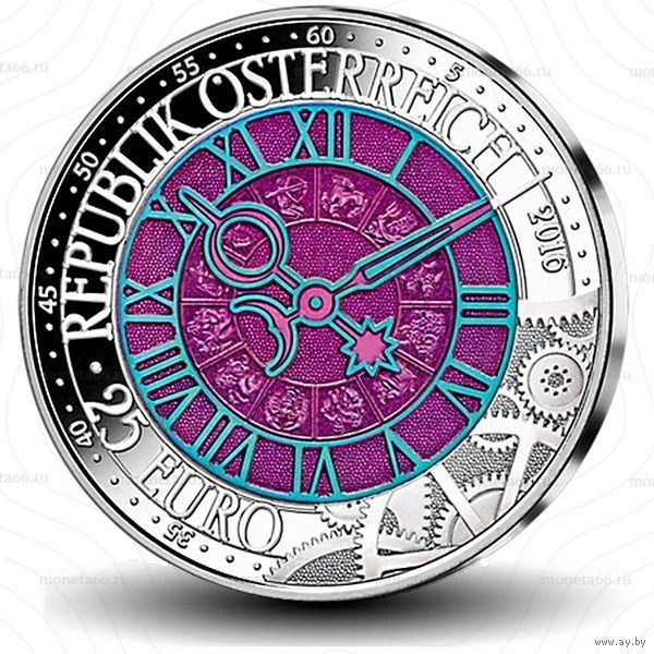 Год выпуска серебряной монеты 25 евро Австрия: 09 марта 2016 год. Коллекционная серебряная монета номиналом 25 евро Австрия выпуска: монетный двор Австрия (Вена). Гурт у монеты 25 евро Австрия: гладкий. Толщина серебряной монеты 25 евро Австрия: 2,3 мм. Вес монеты 25 евро Австрия: 17.15 грамм. Качество чеканки серебряной монеты 25 евро Австрия: BU. Сплав 25 евро Австрия: Серебро (Ag 900)/Ниобий.