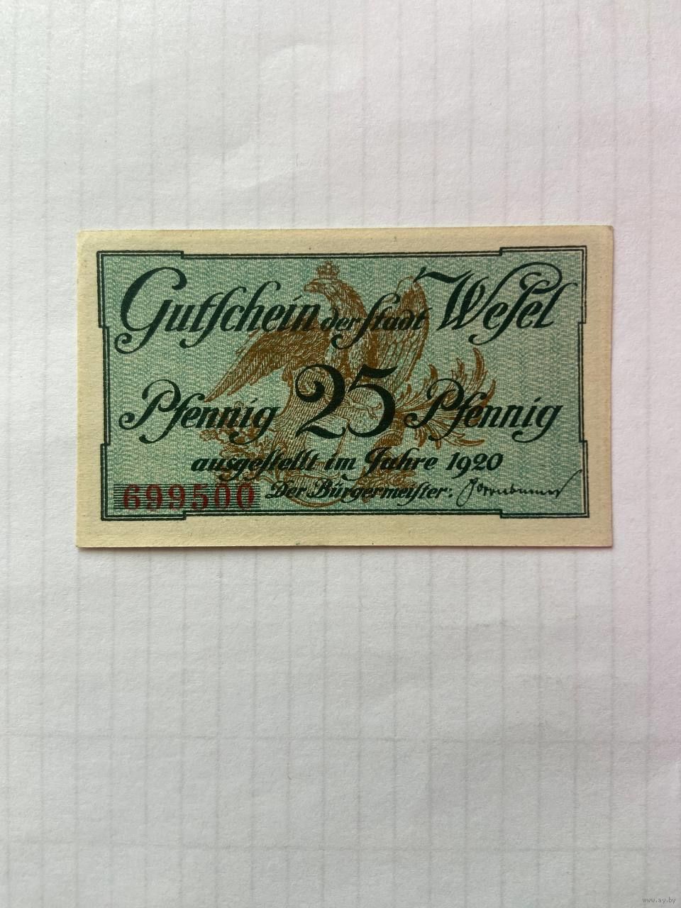 25 пфенигов (нотгельды) Германия г.Вефель -1402