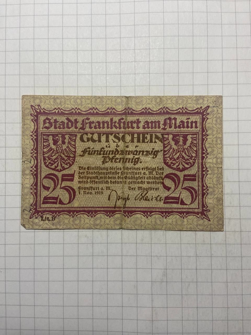 25 пфенингов (нотгельды) г. Германия.-1412-2