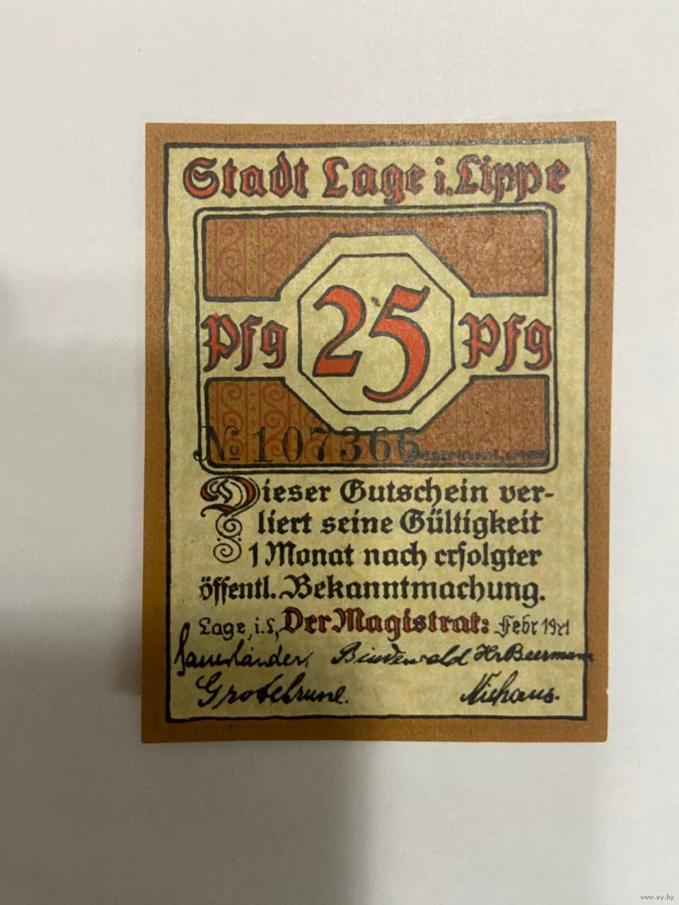 25 пфеннингов (нотгельды) 1921 г. Германия.
