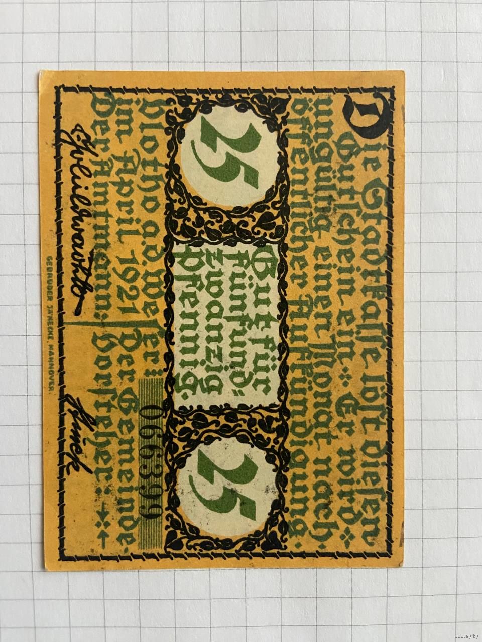 25 пфеннингов (нотгельды) 1921 г. Германия.