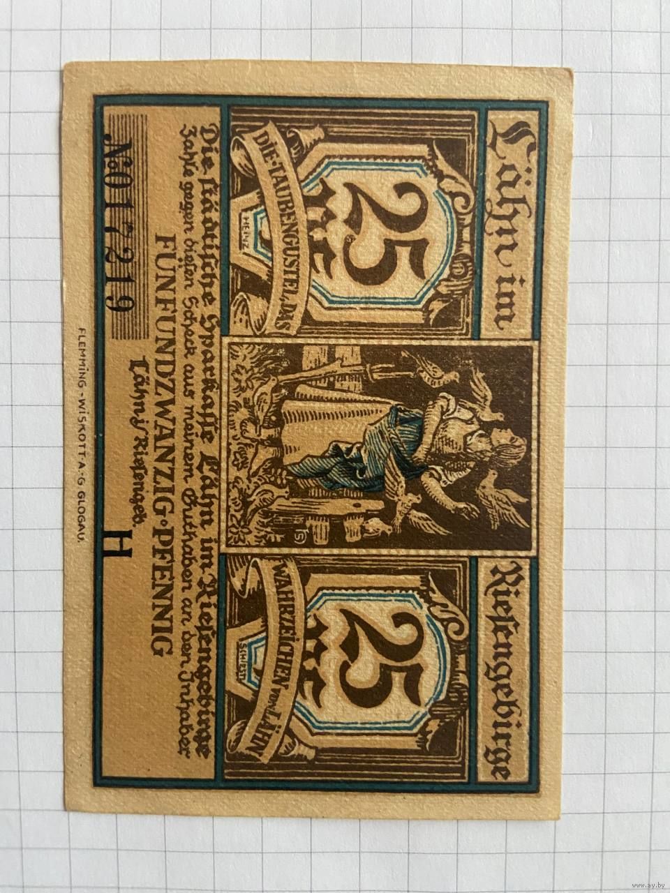 25 пфеннингов (нотгельды) 1921 г. Германия.