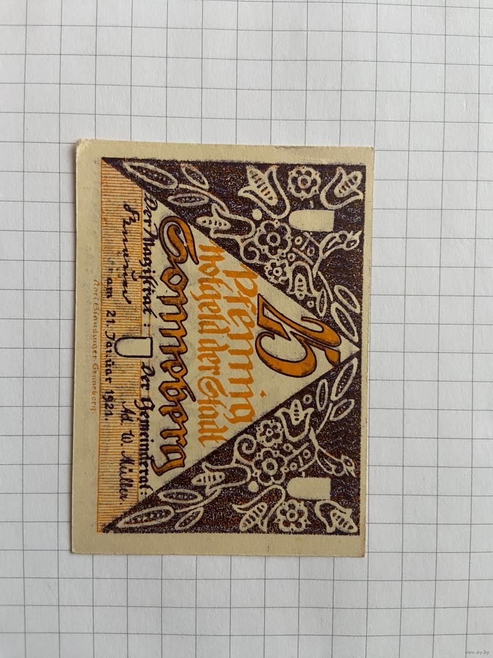 25 пфеннингов (нотгельды) 1921 г. Германия.