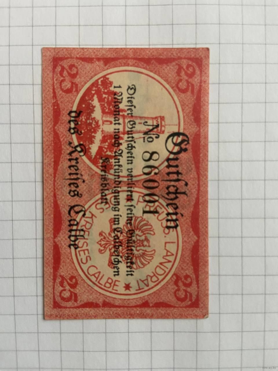 25 пфеннингов (нотгельды) 1921 г. Германия.