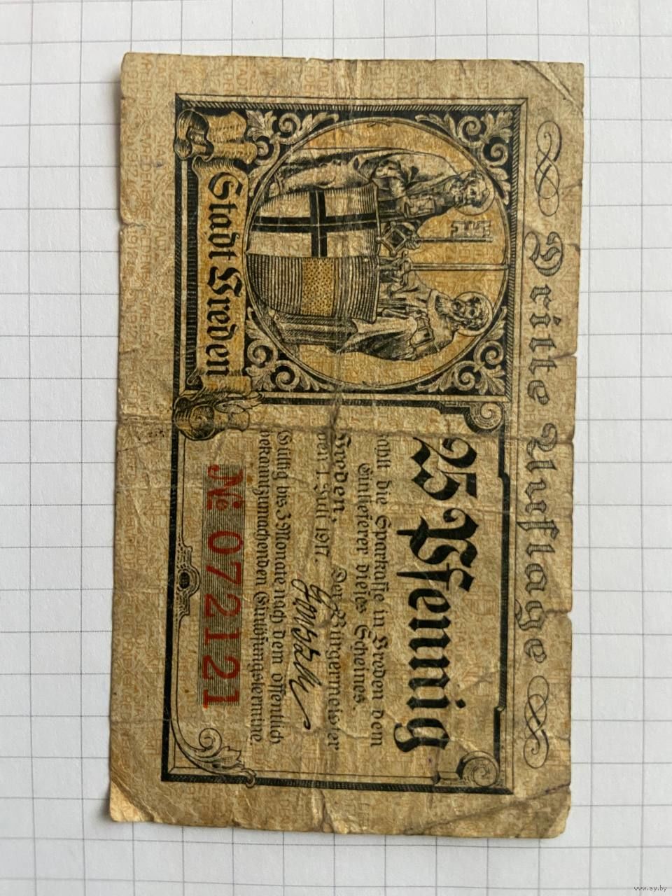 25 пфеннингов (нотгельды) 1921 г. Германия.