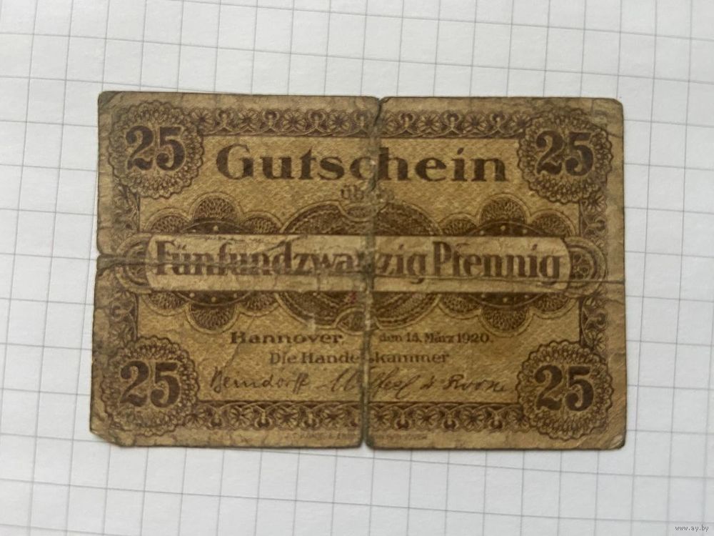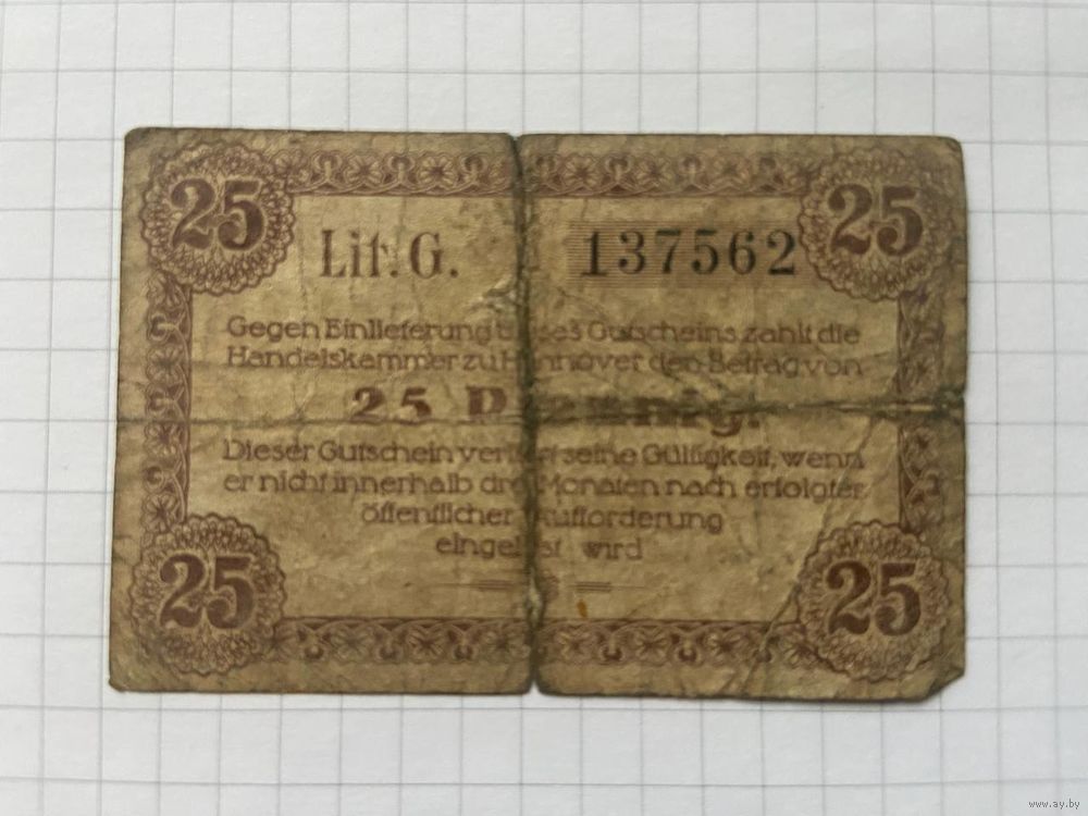 25 пфеннингов (нотгельды) 1921 г. Германия.