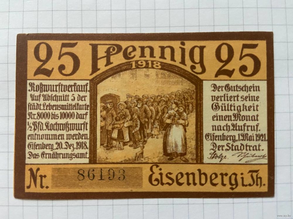 25 пфеннингов (нотгельды) 1921 г. Германия.