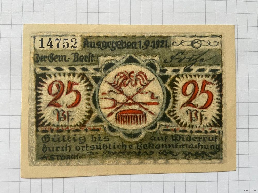 25 пфеннингов (нотгельды) 1921 г. Германия.