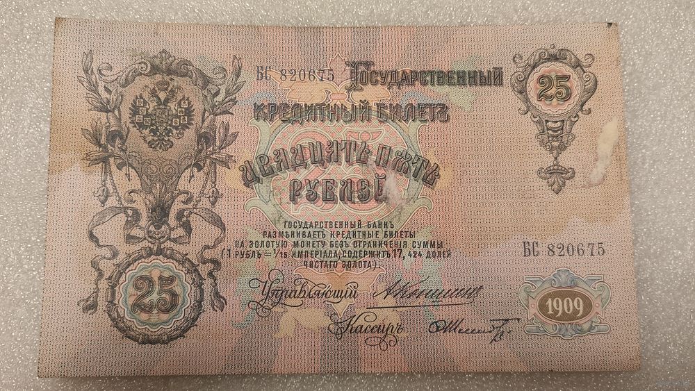 25 рублей 1909 Коншин-Ф.Шмидт