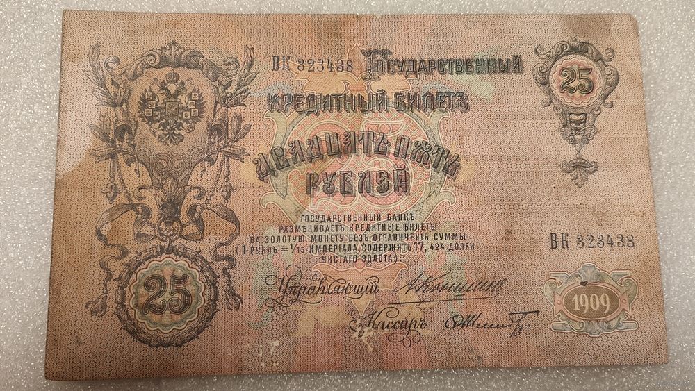 25 рублей 1909 Коншин-Ф.Шмидт