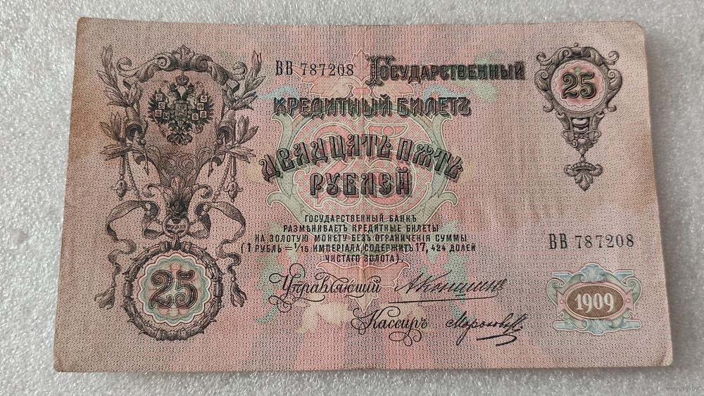 25 рублей 1909 Коншин-Морозов,Царское правительство ,200 лотов с 1 рубля!!!
