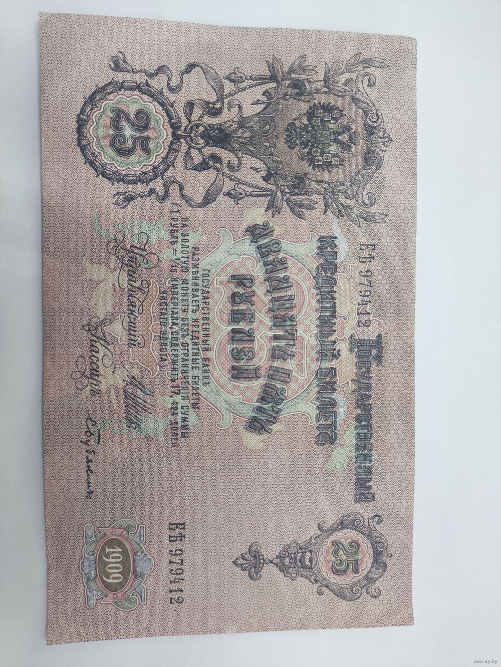 25 рублей 1909 . Шипов -Бубякин. Серия ЕЪ.