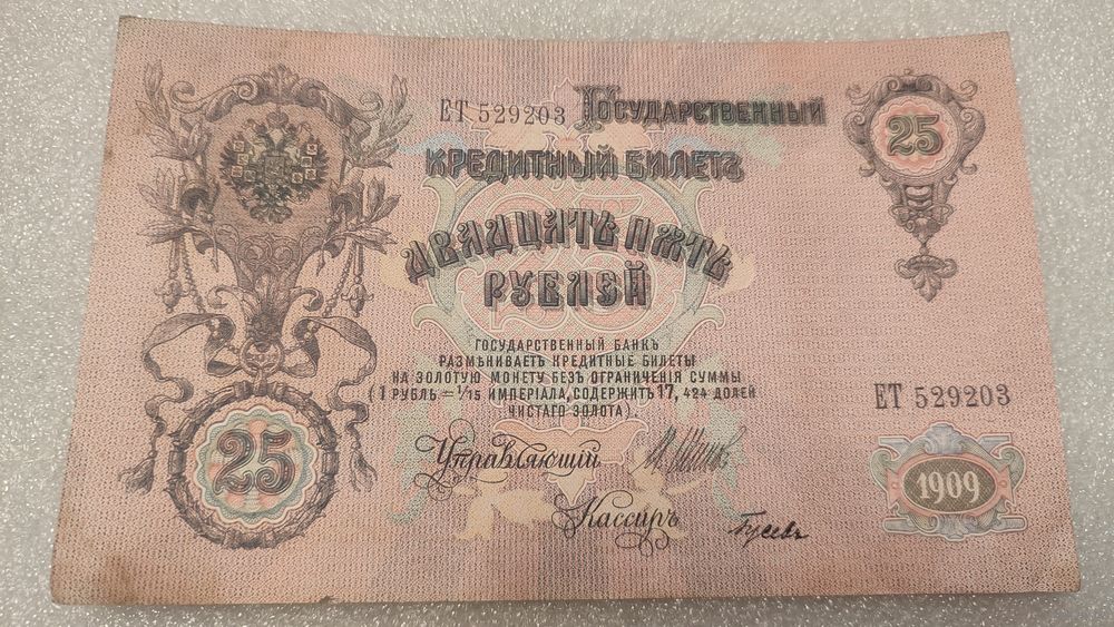 25 рублей 1909 Шипов-Гусев