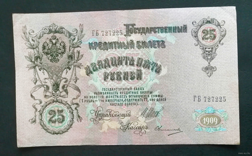 25 рублей 1909 Шипов Овчинников ГБ 727225 #0038