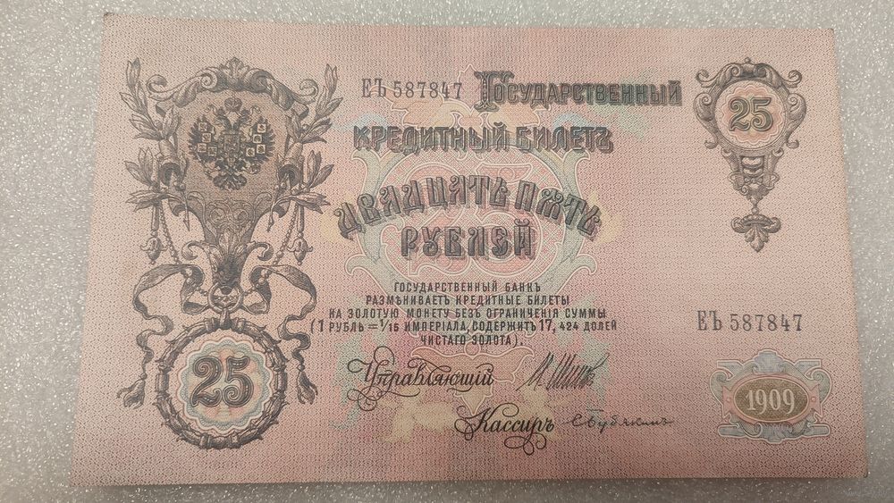 25 рублей 1909 Шипов-С.Бубякин