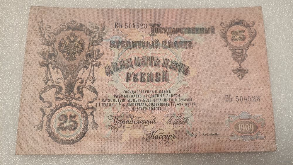 25 рублей 1909 Шипов-С.Бубякин