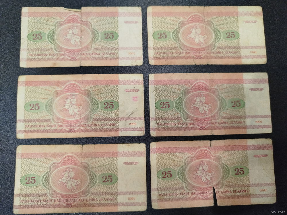 25 рублей 1992г. 6 шт.