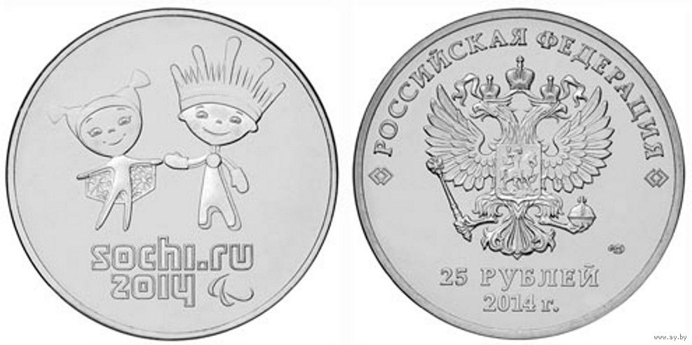 25 рублей 2014 год Сочи 2014 XI парал. игры (талисманы) _состояние UNC
