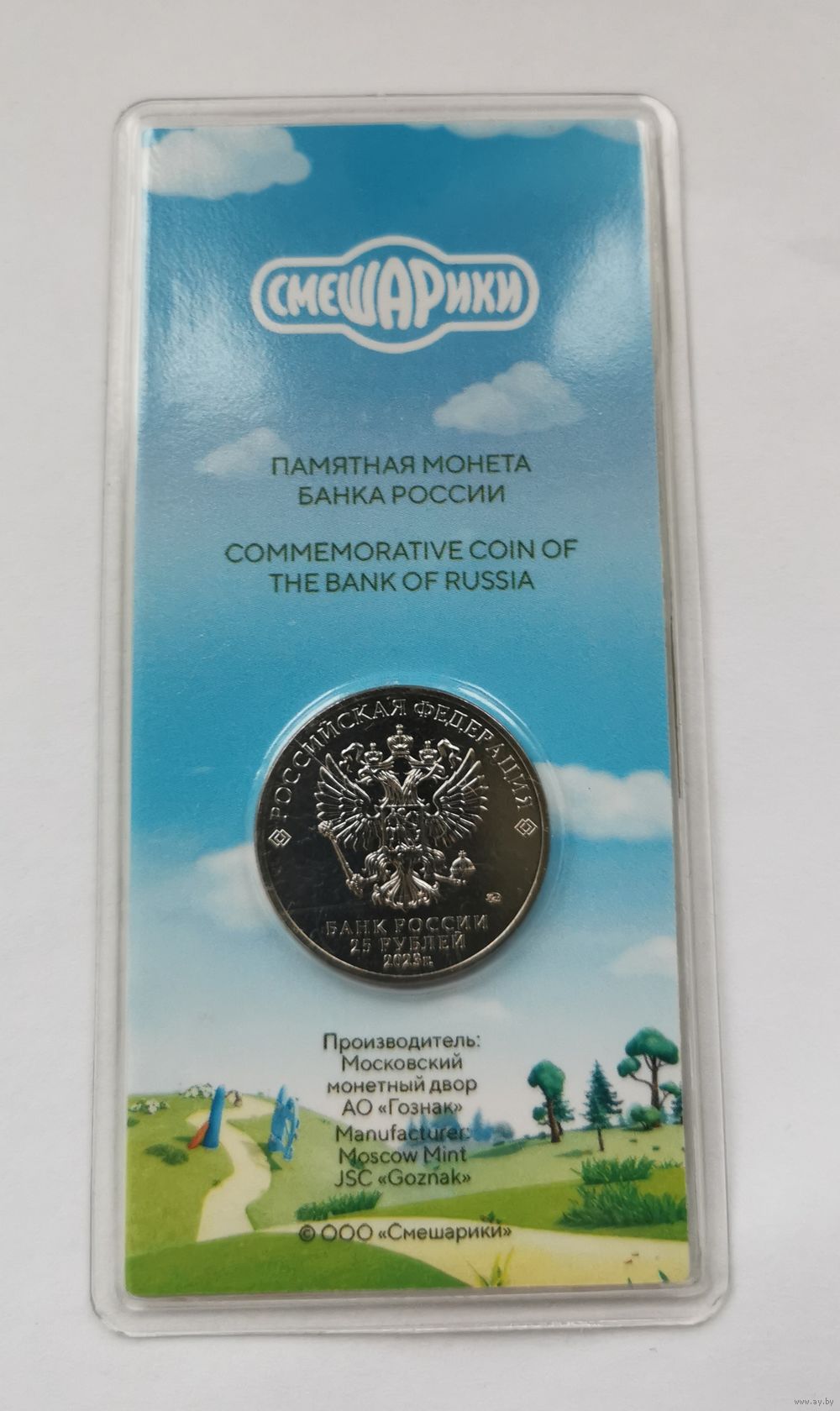 25 рублей 2023 г. Смешарики. Цветная. В блистере. С рубля!