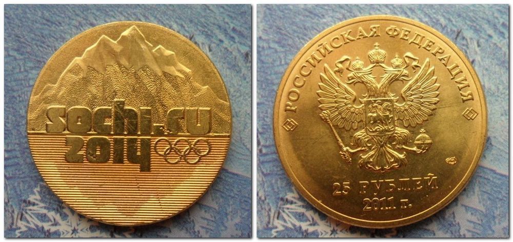 25 рублей Россия - Сочи ГОРЫ (ПОЗОЛОТА) 2011 г.в. СПМД
