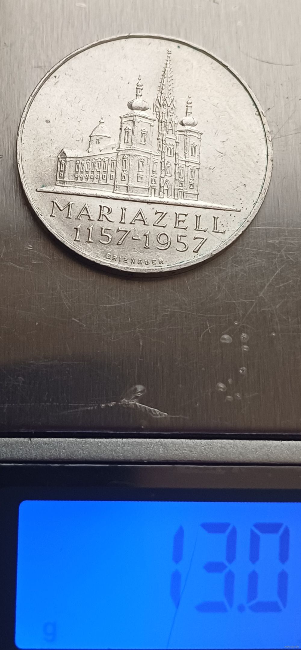 25 шиллингов.1957г .800пр.,серебра. 800 лет Базилике Мариацелля. Австрия.