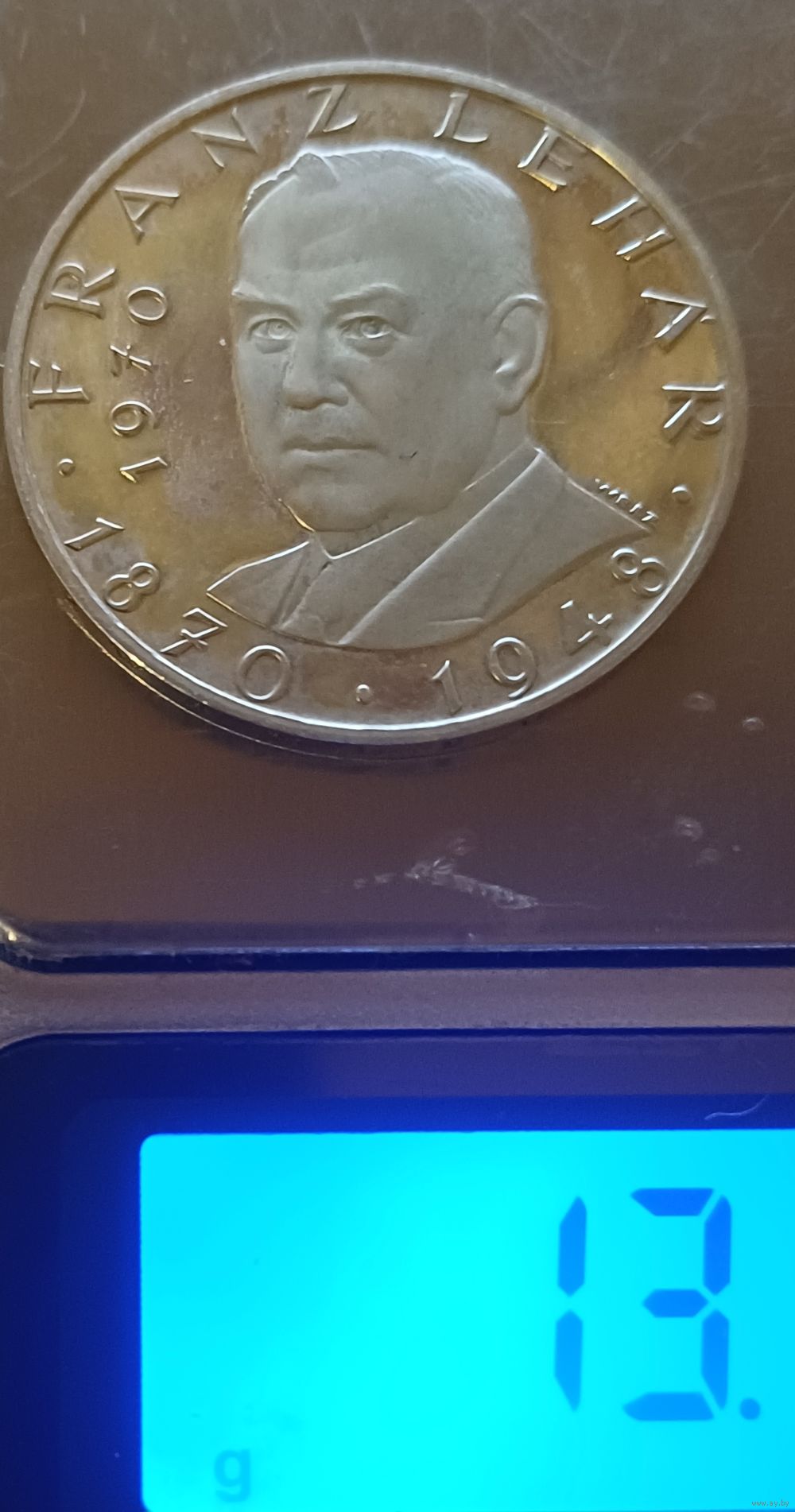 25 шиллингов, 1970г. 800пр., серебра. 100 лет со дня рождения Франца Легара. Австрия. Не чищена.