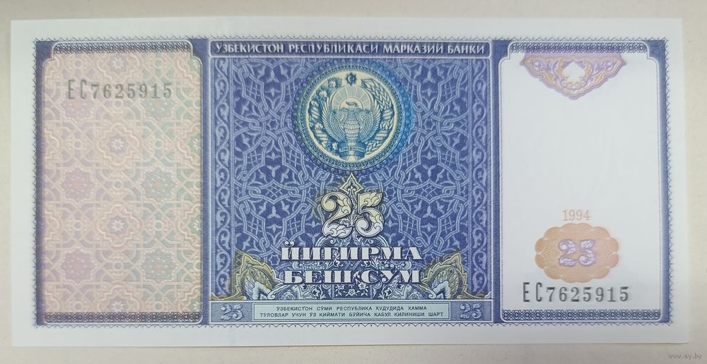 25 сум 1994 года - Узбекистан - UNC