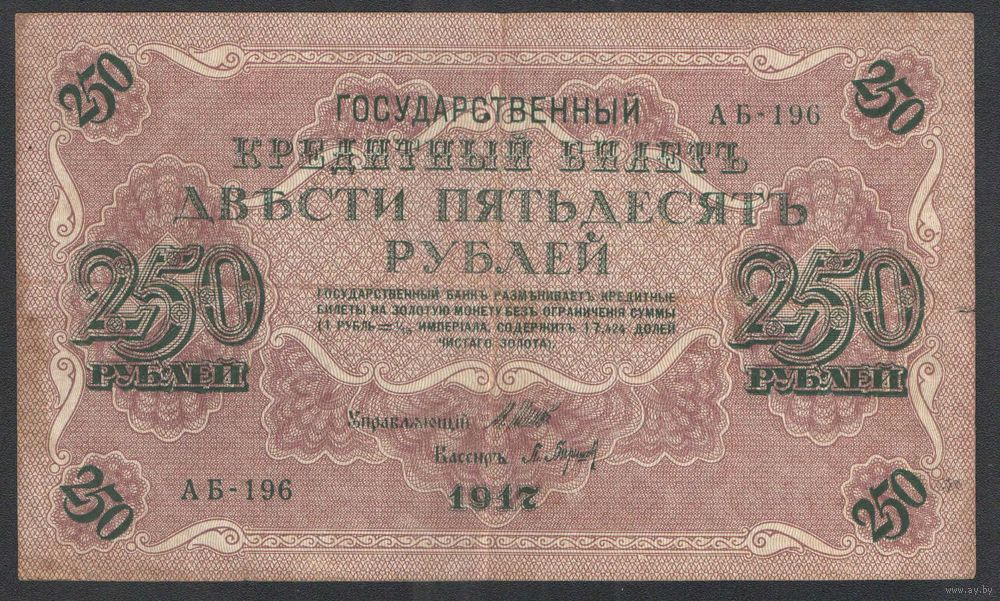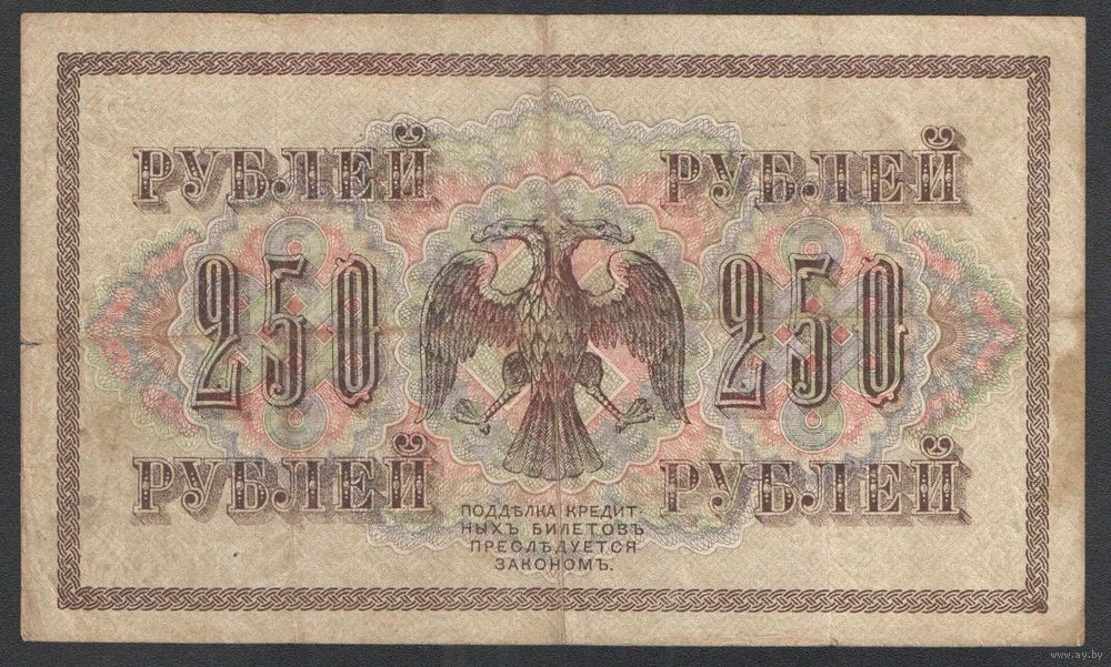 250 рублей. Временное правительство. Шипов-Барышев. 1917 год.