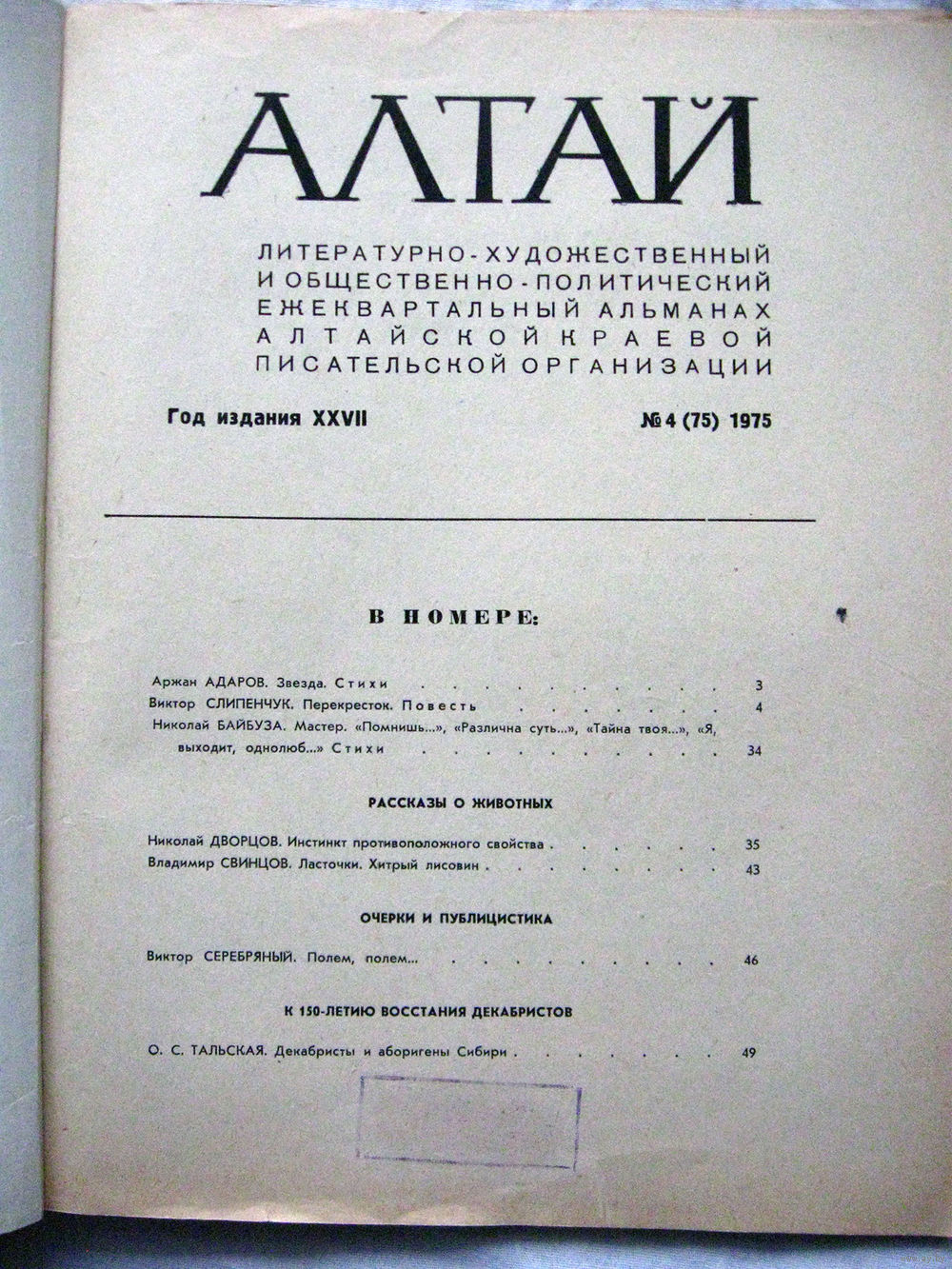 26-01 Журнал Алтай 4-1975