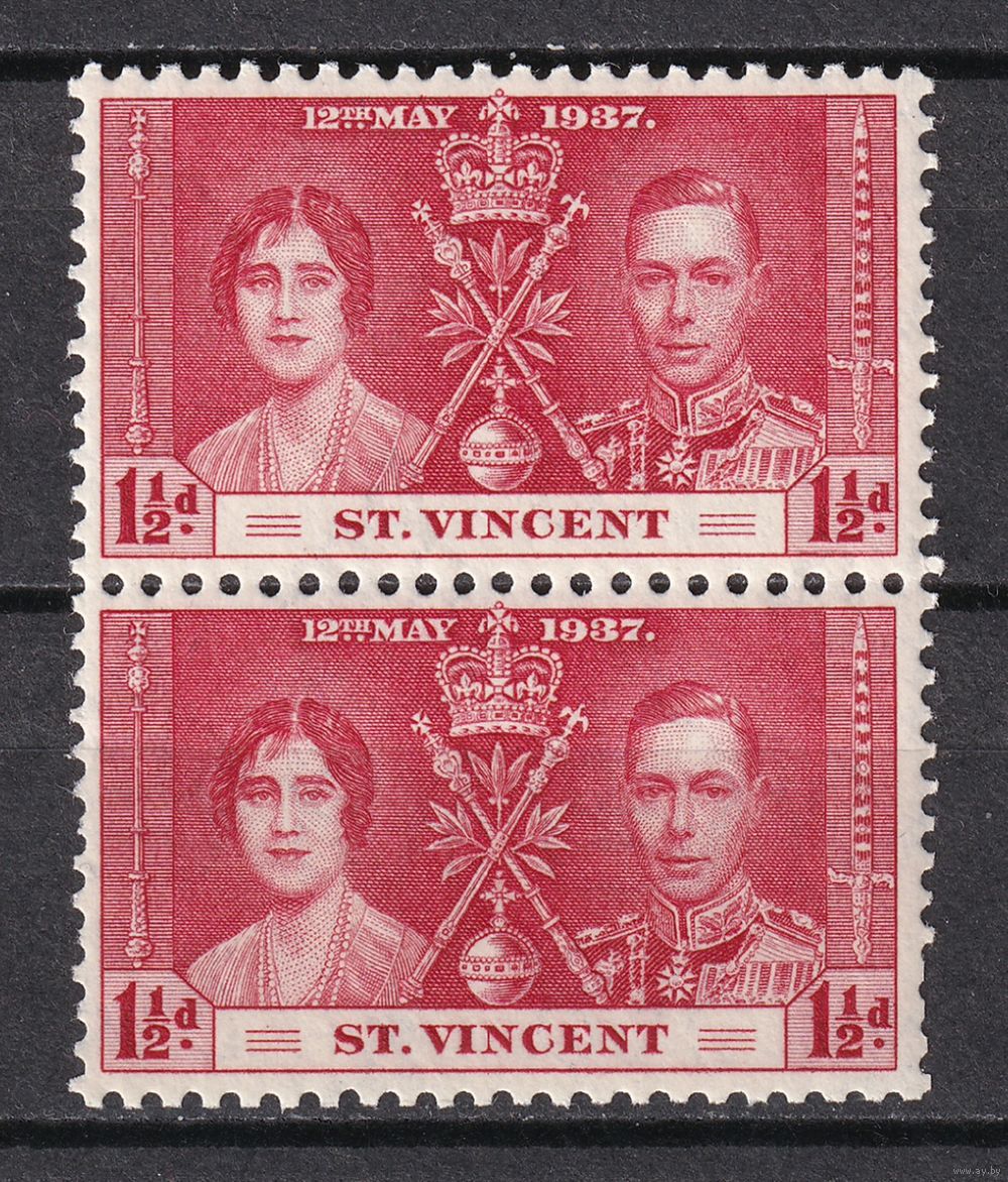 Сент Винсент. Коронация Георга VI и Елизаветы. 1937 г. 1 1/2P. Mi.#117. MNH. Пара.
