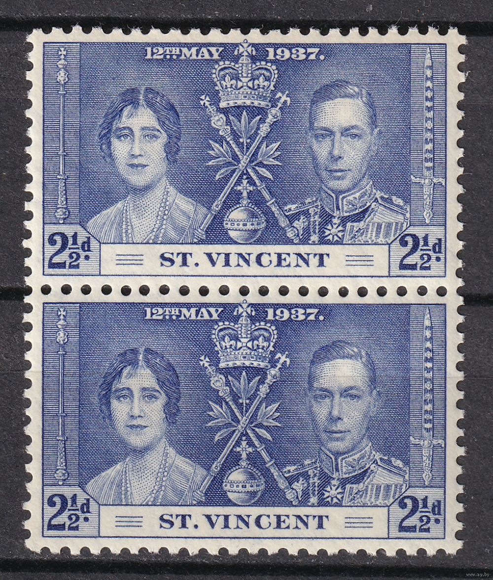 Сент Винсент. Коронация Георга VI и Елизаветы. 1937 г. 2 1/2P. Mi.#118. MNH. Пара.
