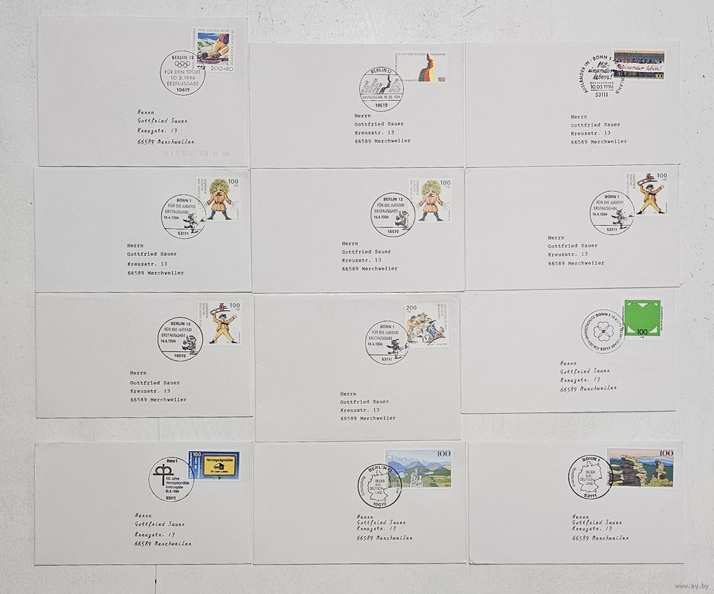 27.Pc. Германия. 1993-1994 гг. Маркированные конверты с гашением первого дня. 55 шт. Хорошее состояние.