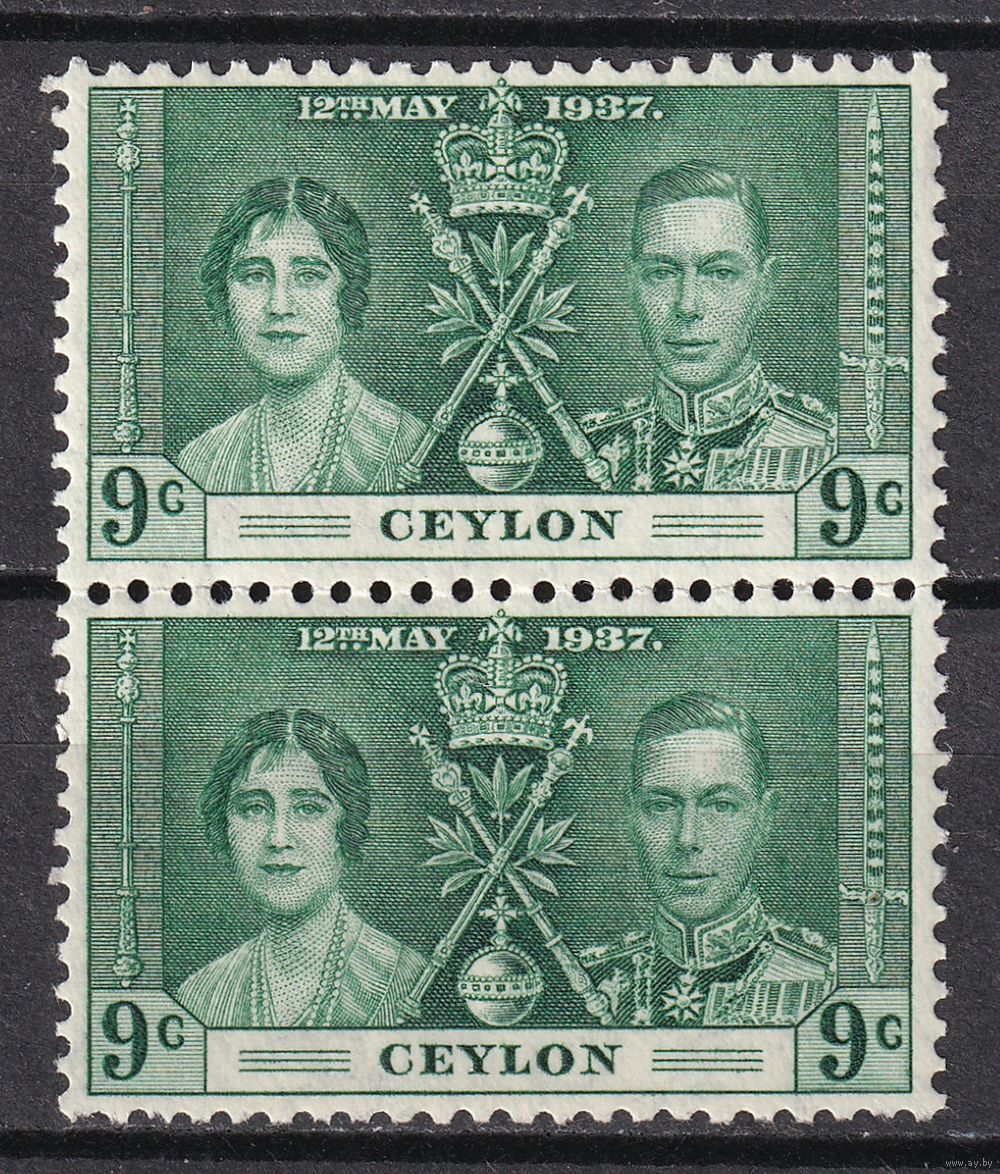Цейлон. Коронация Георга VI и Елизаветы. 1937 г. 9C. Mi.#228. MNH. Пара.