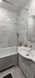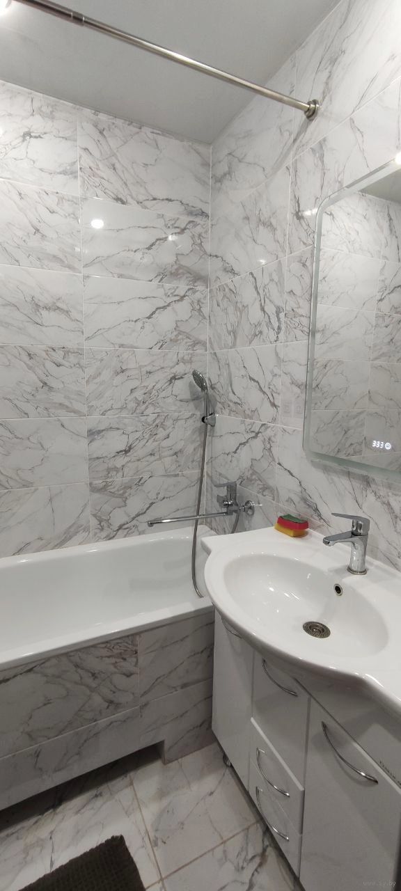 В квартире оборудован полноценный санузел, площадью 5 кв.м, с ванной, унитазом, раковиной и электрическим водонагревателем Timberk, пол и одна стена в санузле имеют электрический подогрев. Новая электропроводка, окна ПВХ. Полы – доска + линолеум, стены выровнены + обои, потолки – гипсокартон + краска,в санузле подвесные. Стены в коридоре обшиты деревянной вагонкой. Входная дверь в квартиру металлическая.