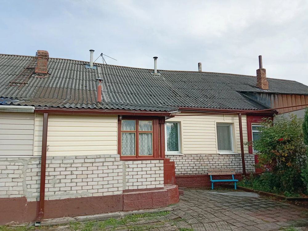 Дом блокированный. Стены бревенчатые, снаружи обшиты сайдингом, внизу до окон