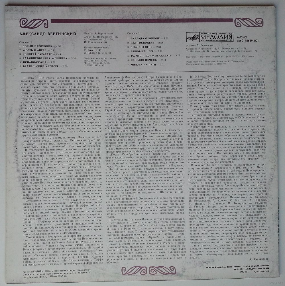 Записи из концертных залов: ВТО, 1948 г. (2, 4, 6. 7), 1953 г. (1, 5), Театр киноактера, 1957 г. (3)