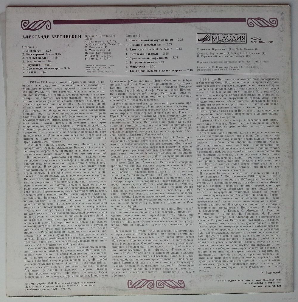 Слова Н. Агнивцева (1), A. Вертинского (2 — 5), Г. Иванова (6), B. Рождественского и А. Вертинского (7)
