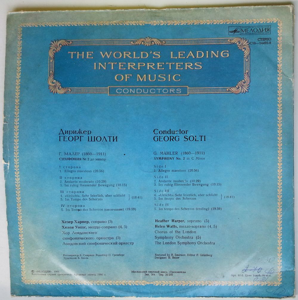 Pressed By – Московский Опытный Завод «Грамзапись»