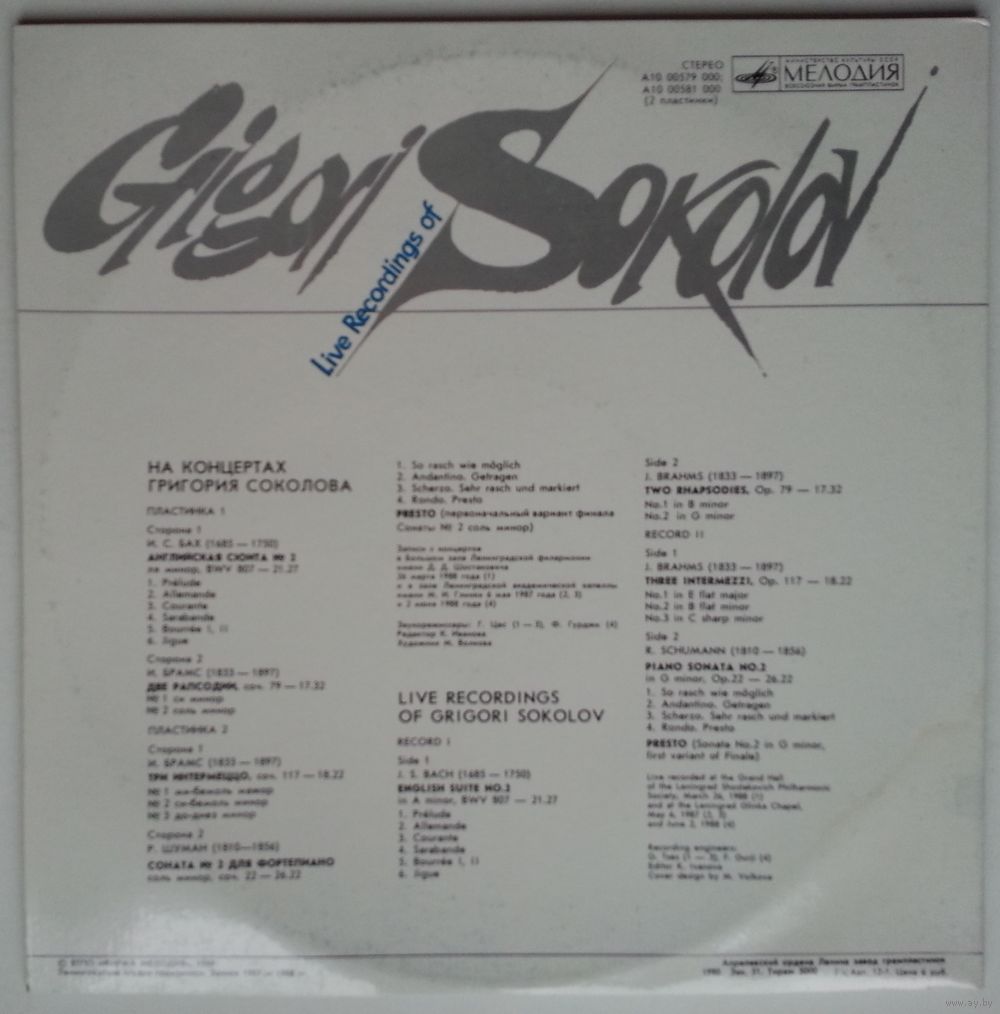 Live recorded at the Grand Hall of the Leningrad Shostakovich Philharmonic Society, March 26, 1988 (A1 to A6)