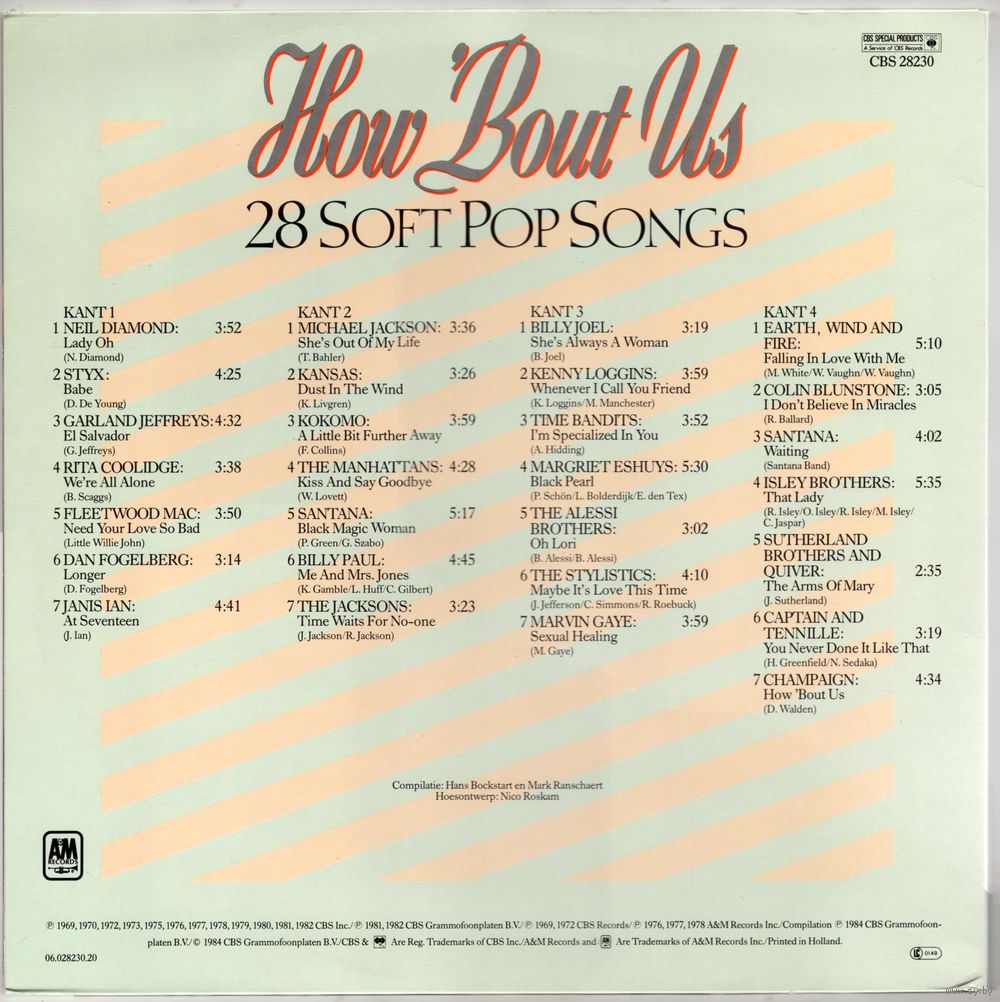 Michael Jackson, Santana, Marvin Gaye, Billy Joel, Earth, Wind & Fire, Fleetwood Mac, The Stylistics, The Jacksons, Styx, Kansas, Neil Diamond, Janis Ian, Rita Coolidge і іншыя