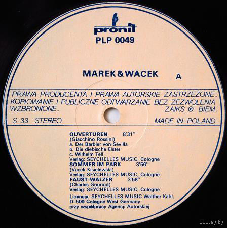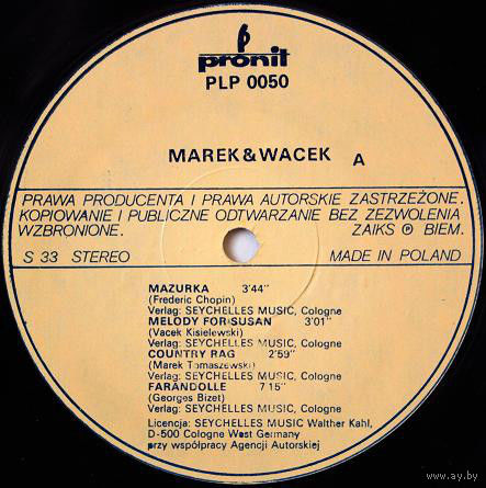 Licence: Seychelles Music Walther Kahl, D-500 Cologne, West Germany.