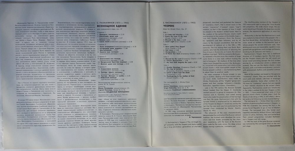 С.РАХМАНИНОВ. Всенощное бдение: Соч. 37: Для смеш. хора