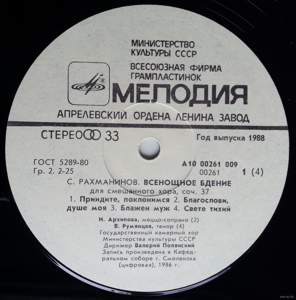 Гос. камер. хор Мин-ва культуры СССР, дир. В. Полянский.
