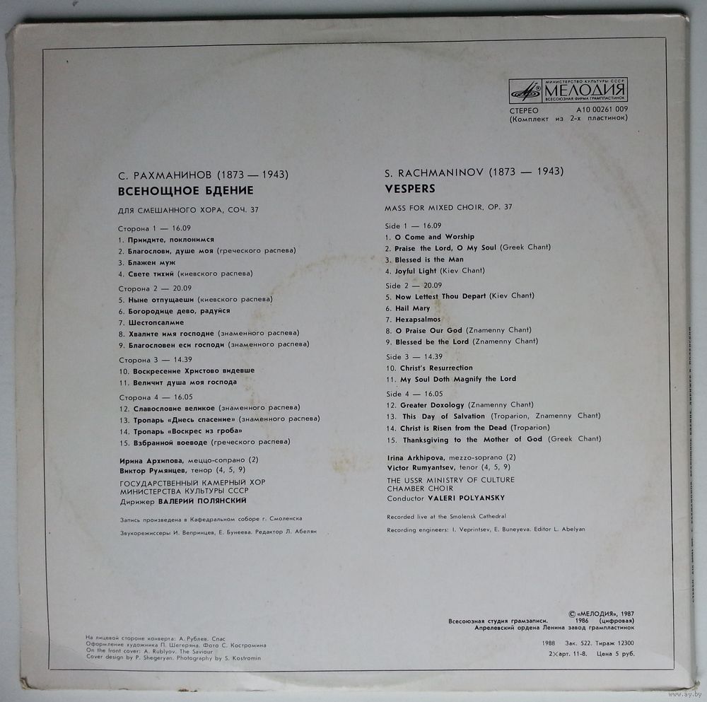 С.РАХМАНИНОВ. Всенощное бдение: Соч. 37: Для смеш. хора