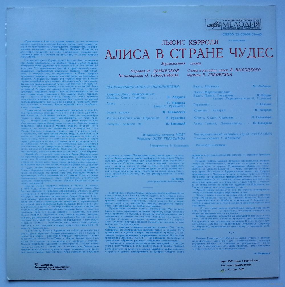 Кэрролл, Додо, Чеширский кот, Улыбка, Синяя гусеница – Всеволод Абдулов