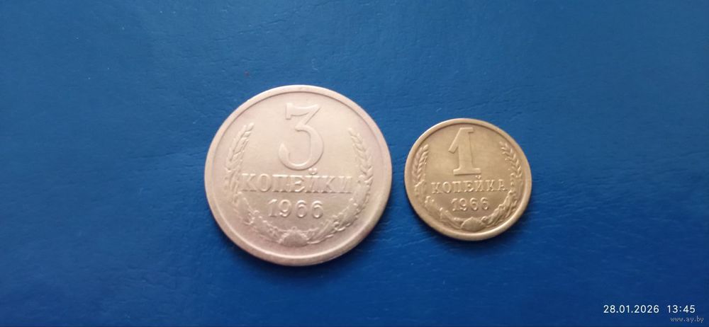 3 и 1 копейка 1966 год СССР (Состояние на фото,в лоте 2 монеты)